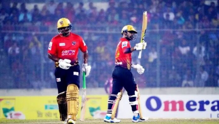 ১৭৬ রানের টার্গেটে ব্যাট করতে নেমে প্রথম বলেই চার মারেন লিটন। ইনিংসের প্রথম ওভারে ৫ রান সংগ্রহ করে কুমিল্লা। ইনিংসের দ্বিতীয় ওভারের প্রথম বলে ছক্কা ও দ্বিতীয় বলে চার মারেন লিটন দাস। ওভারের পঞ্চম বলে ছক্কা ও শেষ বলে চার মারেন সুনিল নারিন। এই ওভারে ২০ রান দেন তানজিম হাসান সাকিব।