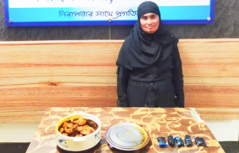 রান্না করা মাংসের হটপটের ভিতর থেকে ১ হাজার পিস ইয়াবাসহ এই নারী ইয়াবা কারবারিকে গ্রেফতার করা হয়েছে।