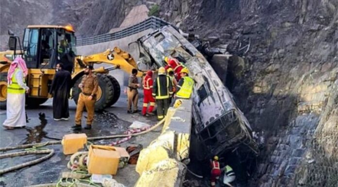 জানা গেছে, বাসের আরোহীরা ওমরাহ পালনের উদ্দেশে মক্কায় যাচ্ছিলেন। বাসের ব্রেক কাজ না করায় একটি সেতুর ওপর উল্টে গিয়ে আগুন ধরে যায়।