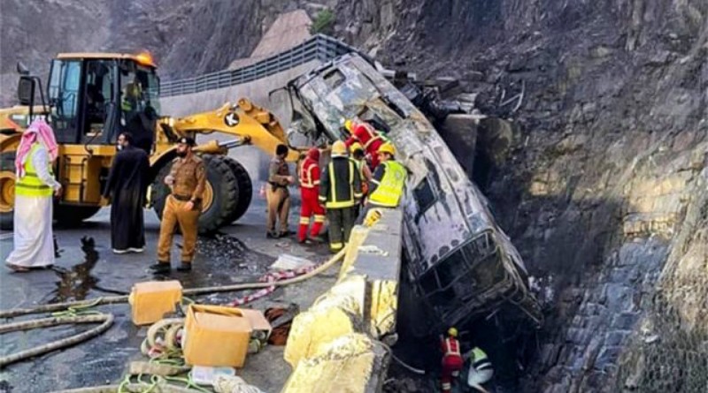 জানা গেছে, জেদ্দা থেকে ৬০০ কিলোমিটার দূরে যাওয়ার পথে তাদের বহনকারী বাসটি গভীর খাদে পড়ে যায়। এতে ২২ জন নিহত হন। ওই বাসে ৪৭ জন যাত্রী ছিল। তাদের মধ্যে ৩৫ জন বাংলাদেশি বলে ধারণা করা হচ্ছে। এ ঘটনায় আরও অন্তত ১৮ জন বাংলাদেশি আহত হয়েছেন।