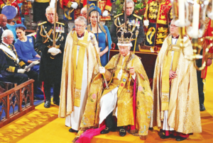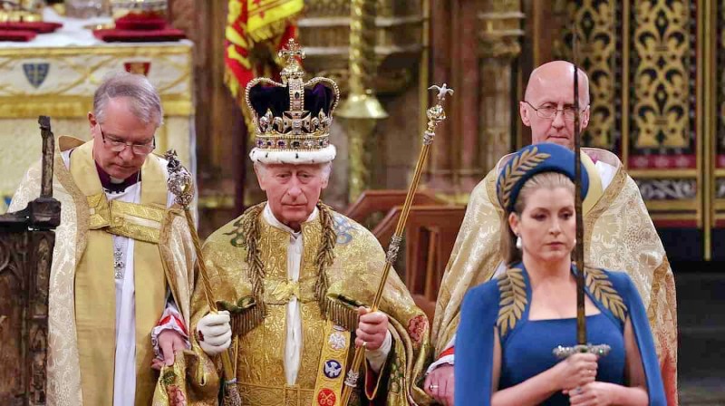 ক্যান্টারবুরির আর্চবিশপ জাস্টিন ওয়েলবি রাজার মাথায় সেইন্ট এডওয়ার্ড মুকুট পরিয়ে দেন। এ সময় তিনি বলেন, ‘ঈশ্বর রাজাকে রক্ষা করুন।’