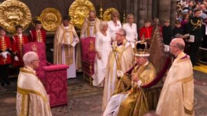 আনুষ্ঠানিকভাবে সিংহাসনে আরোহণ করেছেন তৃতীয় চার্লস। শপথ গ্রহণের পর তাঁকে মুকুট পরিয়ে দেওয়া হয়। এরপর তিনি সিংহাসনে বসেন। পরে রানি ক্যামিলাকেও মুকুট পরিয়ে দেওয়া হয়।