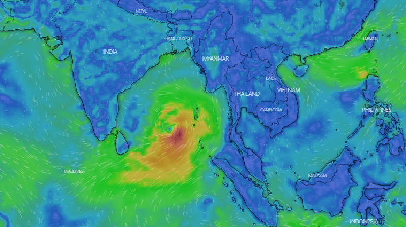 ঘূর্ণিঝড় কেন্দ্রের ৭৪ কিলোমিটারের মধ্যে বাতাসের একটানা সর্বোচ্চ গতিবেগ ঘণ্টায় ১৪০ কিলোমিটার, যা দমকা অথবা ঝড়ো হাওয়ার আকারে ১৬০ কিলোমিটার পর্যন্ত বৃদ্ধি পাচ্ছে। কেন্দ্রের নিকটবর্তী এলাকায় সাগর খুবই বিক্ষুব্ধ রয়েছে।