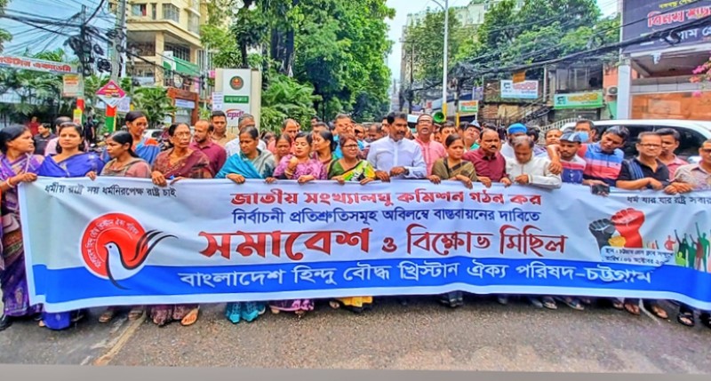 খাসখবর চট্টগ্রাম ডেস্ক: চলতি বছরের অক্টোবর মাসের মধ্যেই জাতীয় সংখ্যালঘু কমিশন গঠন করার দাবিতে কেন্দ্রীয় কর্মসূচির অংশ হিসেবে চট্টগ্রামে সমাবেশ ও বিক্ষোভ মিছিল করেছে হিন্দু-বৌদ্ধ-খ্রিস্টান ঐক্য পরিষদ।