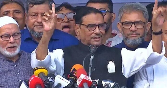আওয়ামী লীগের সাধারণ সম্পাদক বলেন, মির্জা ফখরুল পাঁচ তারকা হোটেলে নাস্তা করে অনশন করেন ৩ ঘণ্টা। আড়াই ঘণ্টা পর বিদেশি জুস খেয়ে অনশন বন্ধ করে দেন। এই আন্দোলন তারা করছেন। আমাদের বার্তা দিচ্ছে, দিনক্ষণ বলে দিচ্ছে কবে ক্ষমতা ছেড়ে দিতে হবে। আমি জিজ্ঞেস করি, কার কাছে ক্ষমতা দেবে? আপনার কাছে? নাকি দণ্ডিত যুবরাজের কাছে? বাংলাদেশের ম্যাজিক লিডার শেখ হাসিনা। আপনি কে বার্তা দেওয়ার—শেখ হাসিনা কার কাছে ক্ষমতা দেবে? শেখ হাসিনা পদত্যাগ করবেন কিনা?