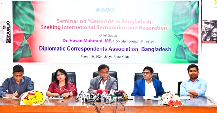 রোববার (১০ মার্চ) বিকেলে রাজধানীর জাতীয় প্রেস ক্লাবে আয়োজিত সেমিনারে এসব কথা বলেন তিনি। ‘বাংলাদেশে জেনোসাইড: আন্তুর্জাতিক স্বীকৃতি ও ক্ষতিপূরণ’ শীর্ষক সেমিনার আয়োজন করে ডিপ্লোম্যাটিক করেসপন্ডেন্টস অ্যাসোসিয়েশন, বাংলাদেশ (ডিক্যাব)।