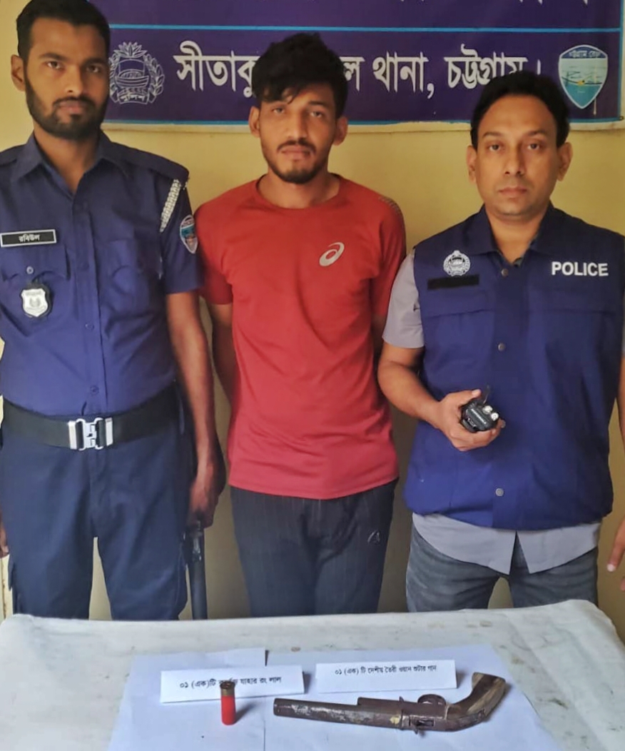 এসময় তার কাছ থেকে দেশে তৈরি একটি ওয়ান শুটার গান ও একটি কার্তুজ উদ্ধার করা হয়।