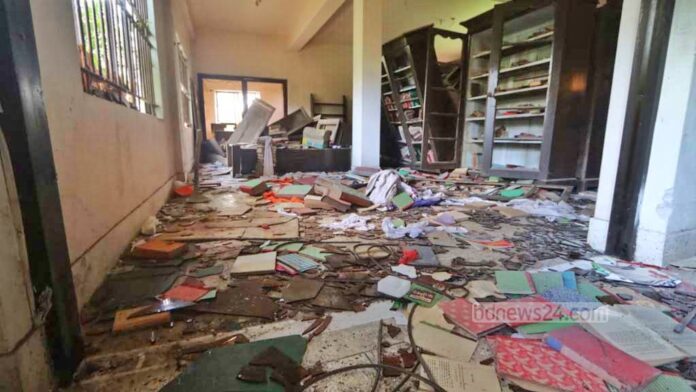 “সেখানে ভাঙচুর চালিয়ে আগুন দেওয়া হয়েছে। এতে হাজার হাজার পুরনো বই পুড়ে গেছে। অনেক বই লুট করে নিয়ে গেছে।”