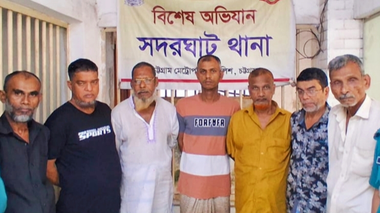 সিএমপির সদরঘাট থানা পুলিশের অভিযান: জুয়া খেলার সরঞ্জাম ও নগদ টাকাসহ ৭ জুয়াড়ী, মদসহ ২ মাদক ব্যবসায়ী গ্রেফতার