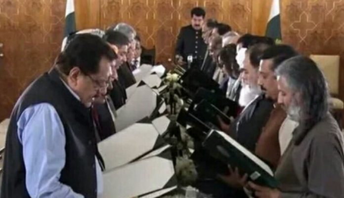 প্রতিবেদনে বলা হয়, আইন-ই-সদরে আয়োজিত শপথগ্রহণ অনুষ্ঠানের সভাপতিত্ব করেন সিনেটের চেয়ারম্যান সাদিক সানজারানি। পাকিস্তানের প্রেসিডেন্ট আরিফ আলভি নতুন মন্ত্রীদের শপথ করাতে অপারগতা জানানোর পর শপথগ্রহণের দিন পিছিয়ে দেওয়া হয়। তবে তার অনুপস্থিতিতে সাদিক সানজারানি নতুন মন্ত্রীদের শপথ করান।
